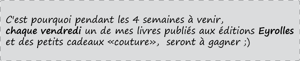 Au mois d'octobre, j'avais envie de vous gâter, de vous remercier d'être toujours plus nombreuses et nombreux à me suivre sur Facebook et sur Instagram, à venir ici sur le blog comme sur le site, mais aussi d'aller à la rencontre de mes livres et de mes ateliers de couture.